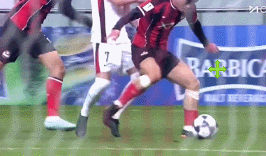 然而最后的“啊”字还没说完,韦世豪就丢球了,被对手后卫一个抢占身位,卡位把韦世豪跟皮球隔开,接着想护球出底线。就在这个节骨眼,韦世豪大步追上,顺势把对手推倒在地(下图)。